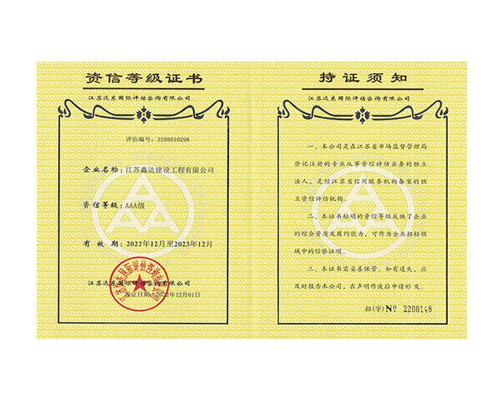 • Bank of China AAA Credit Rating Certificate