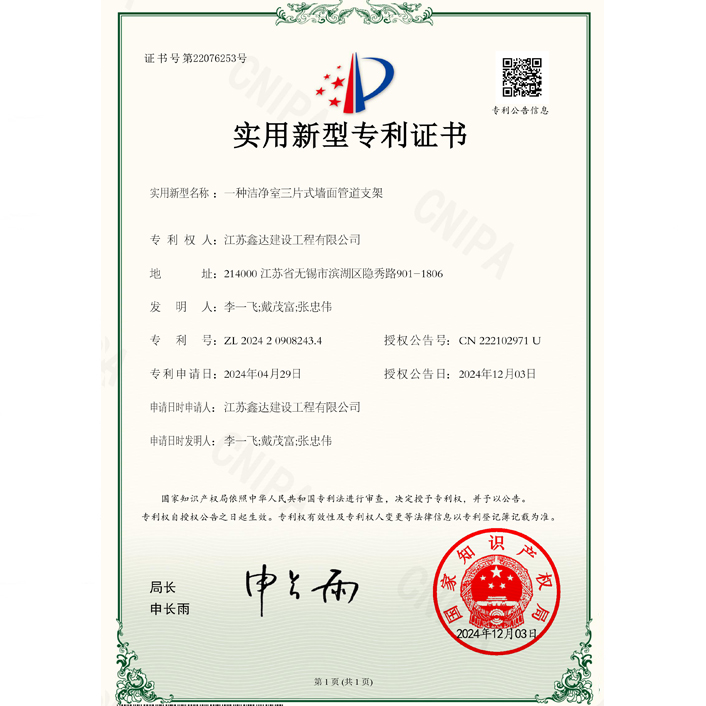 一種潔凈室三片式墻面管道支架