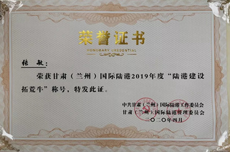 項(xiàng)目動(dòng)態(tài) | 張敏受到甘肅(蘭州)國(guó)際陸港表彰