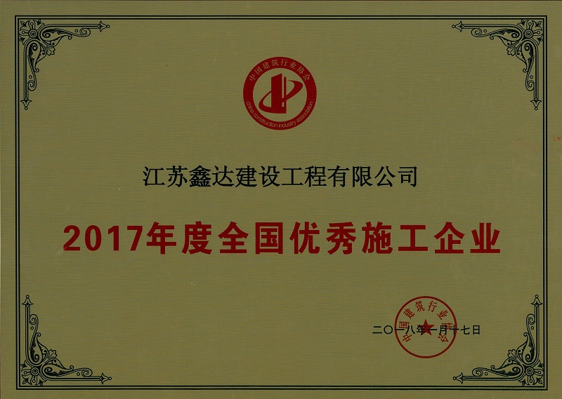 熱烈祝賀我司被評為“2017年度全國優秀施工企業”